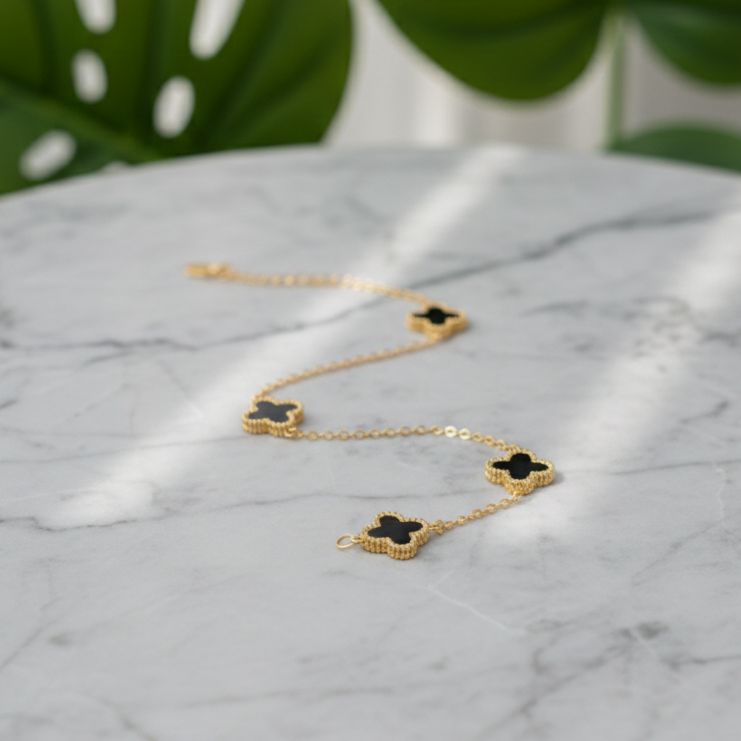 Elevate your everyday elegance with this exquisite gold clover bracelet featuring delicate black enamel accents. Inspired by timeless Mediterranean luxury, this piece combines minimalist design with premium craftsmanship.