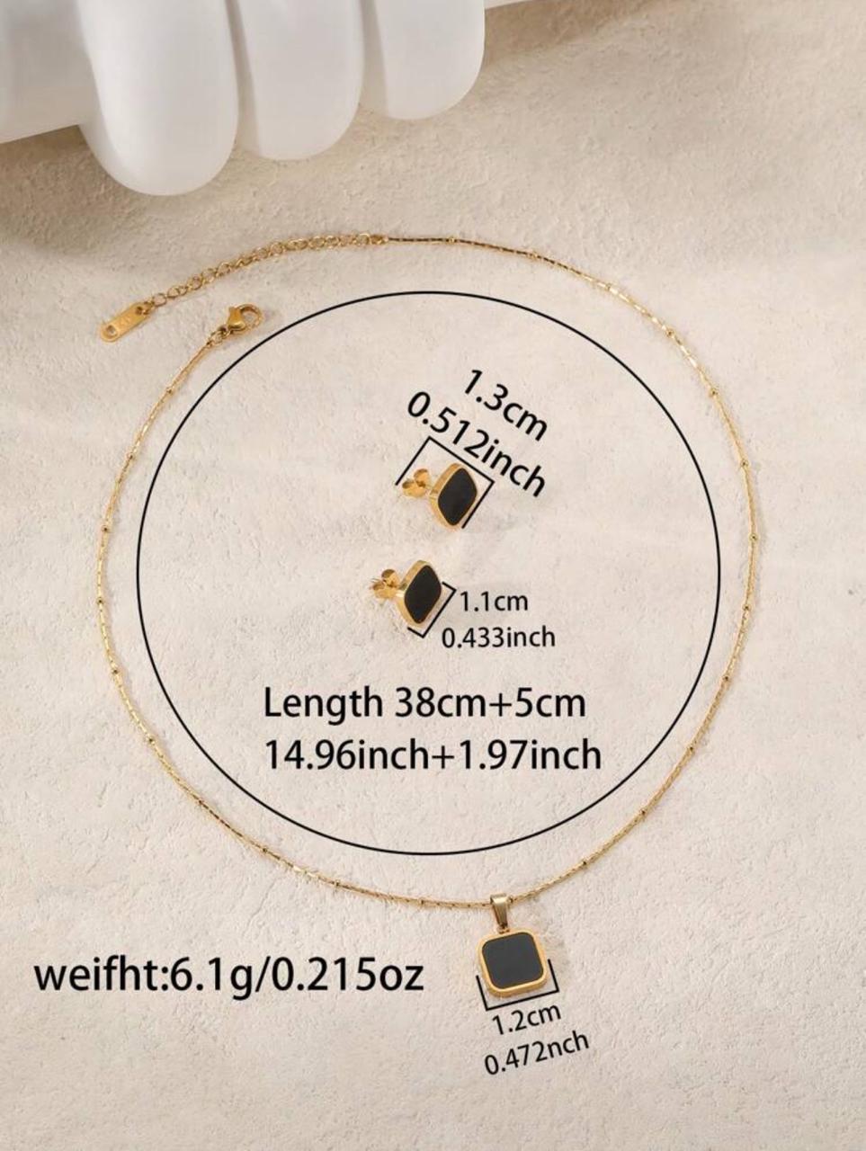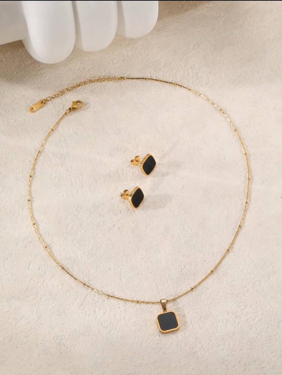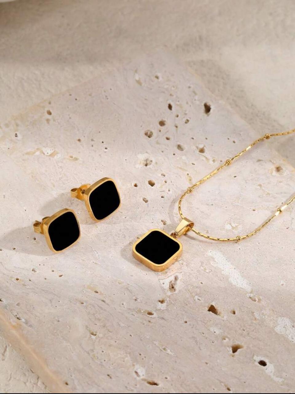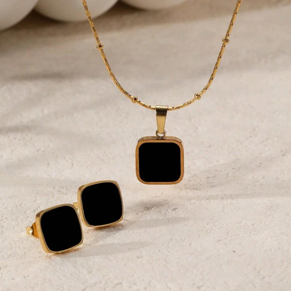 Gold-Plated Stainless Steel Black Square Jewelry Set