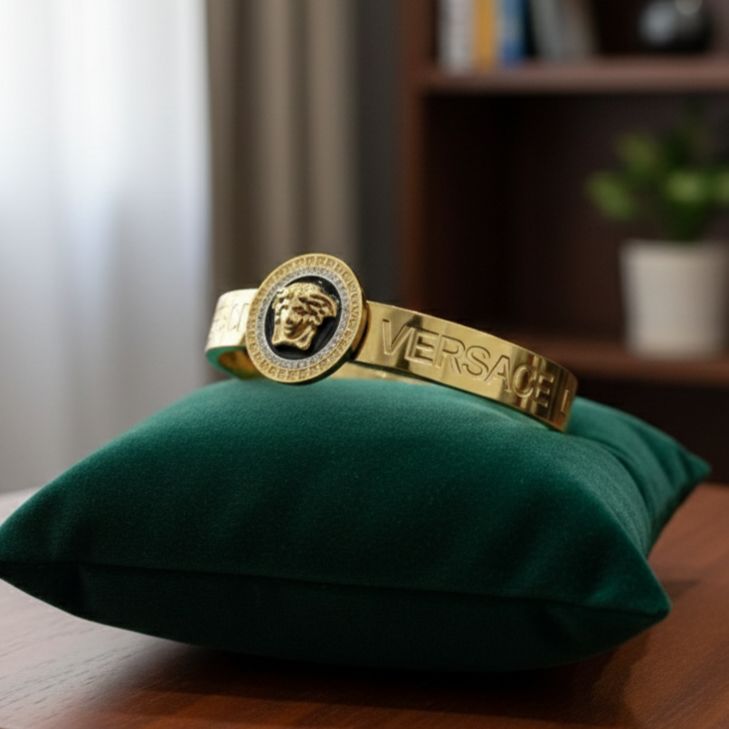 Make a bold statement with this stunning Versace-style gold bracelet featuring the iconic Medusa emblem. Crafted with meticulous attention to detail, this luxury piece combines classic Italian design with contemporary elegance.
